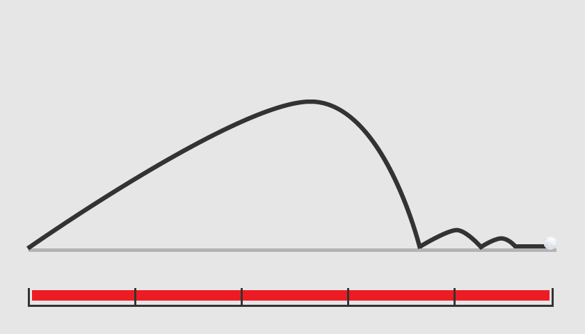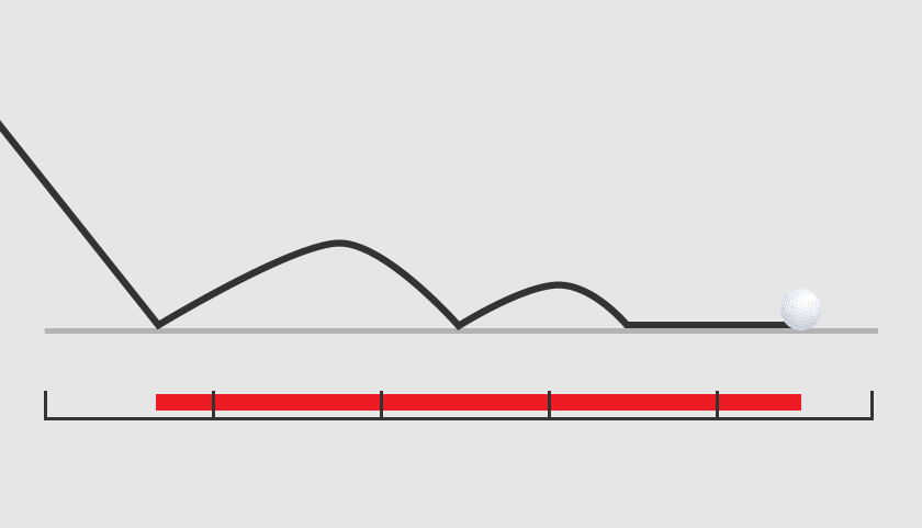 Amount of roll from carry distance to final position of the ball. Lower spin rate and lower effective angle of descent will increase the amount of roll on the surface.