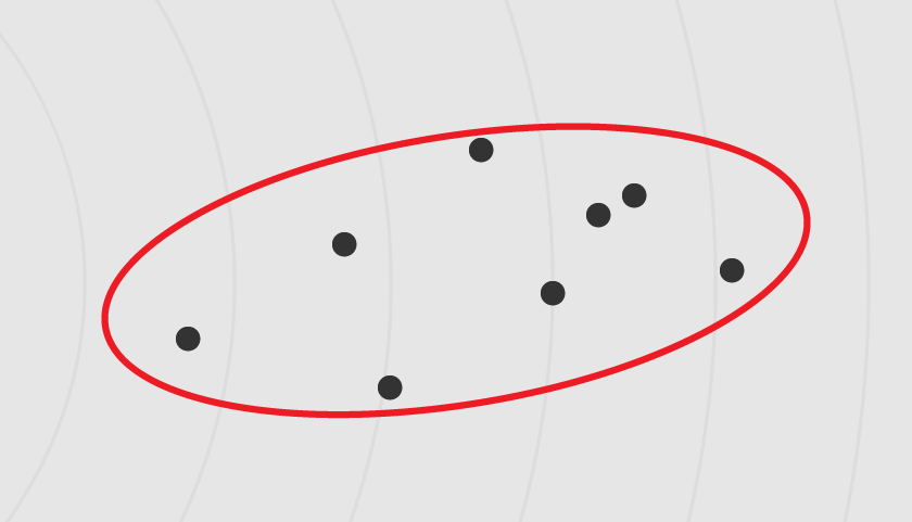 Grouping of the landing positions of shots with the selected club showing forward and lateral deviation of that cluster of shots.